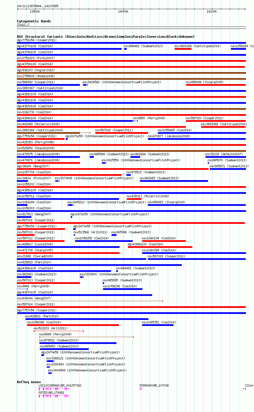 | Known Genes | C21orf15, LOC100288966, MIR8069, POTED |
