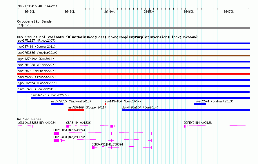 | Known Genes | CBR3, CBR3-AS1, DOPEY2, LOC100133286 |