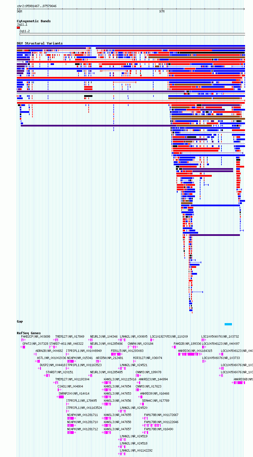 | | Variant Type | CNV deletion | | Copy Number | | | Allele State | | | Allele Origin | | | Probe Count | | | Validation Flag | | | Merged Status | M | | Merged Variants | | | Supporting Variants | nssv17407013 | | Samples | | | Known Genes | ADRA2B, ANKRD23, ANKRD36, ANKRD36B, ANKRD39, ARID5A, ASTL, CIAO1, CNNM3, CNNM4, DUSP2, FAHD2B, FAHD2CP, FAM178B, FER1L5, GPAT2, ITPRIPL1, KANSL3, LMAN2L, LOC100506076, LOC100506123, MIR3127, NCAPH, NEURL3, SEMA4C, SNRNP200, STARD7, STARD7-AS1, TMEM127 | | Method | Sequencing | | Analysis | | | Platform | | | Comments | | | Reference | Almarri_et_al_2020 | | Pubmed ID | 32531199 | | Accession Number(s) | nsv5876678
