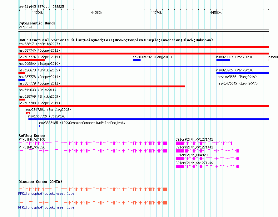 Variant DetailsVariant: nsv587780| Internal ID | 16375189 | | Landmark | | | Location Information | | | Cytoband | 21q22.3 | | Allele length | | Assembly | Allele length | | hg38 | 41956 | | hg19 | 41956 | | hg18 | 41956 |