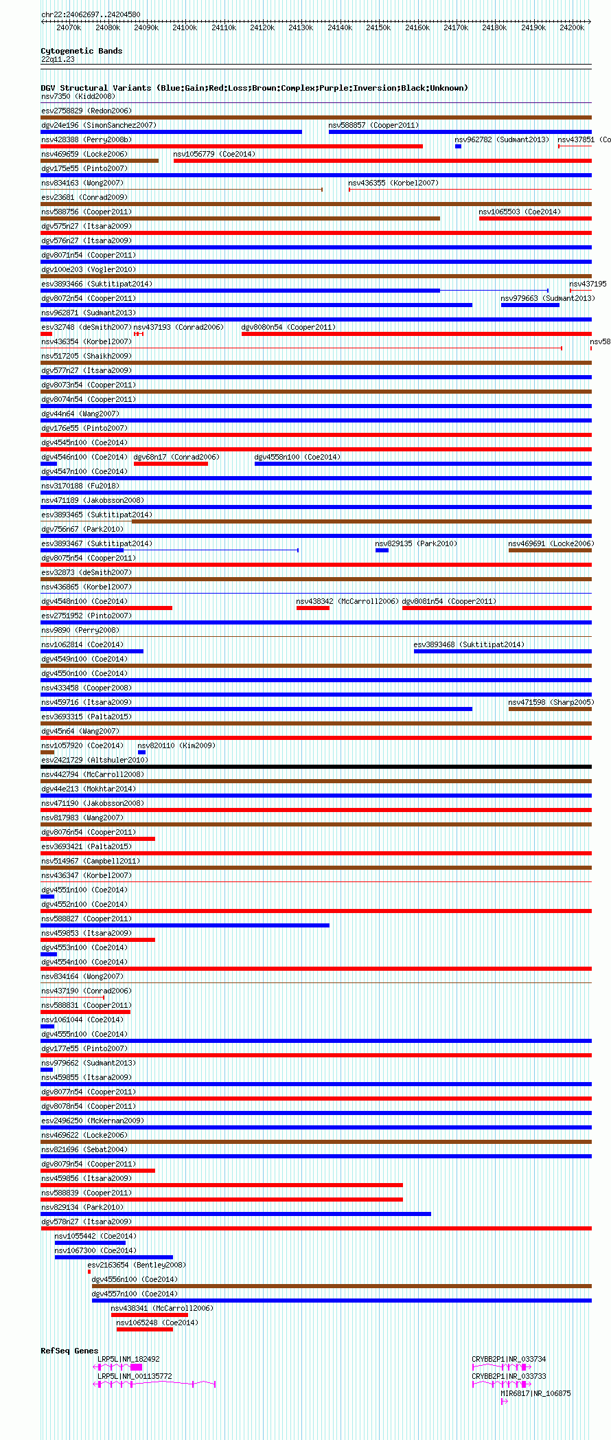 Variant DetailsVariant: nsv588843| Internal ID | 16376252 | | Landmark | | | Location Information | | | Cytoband | 22q11.23 | | Allele length | | Assembly | Allele length | | hg38 | 141884 | | hg19 | 141884 | | hg18 | 141884 |