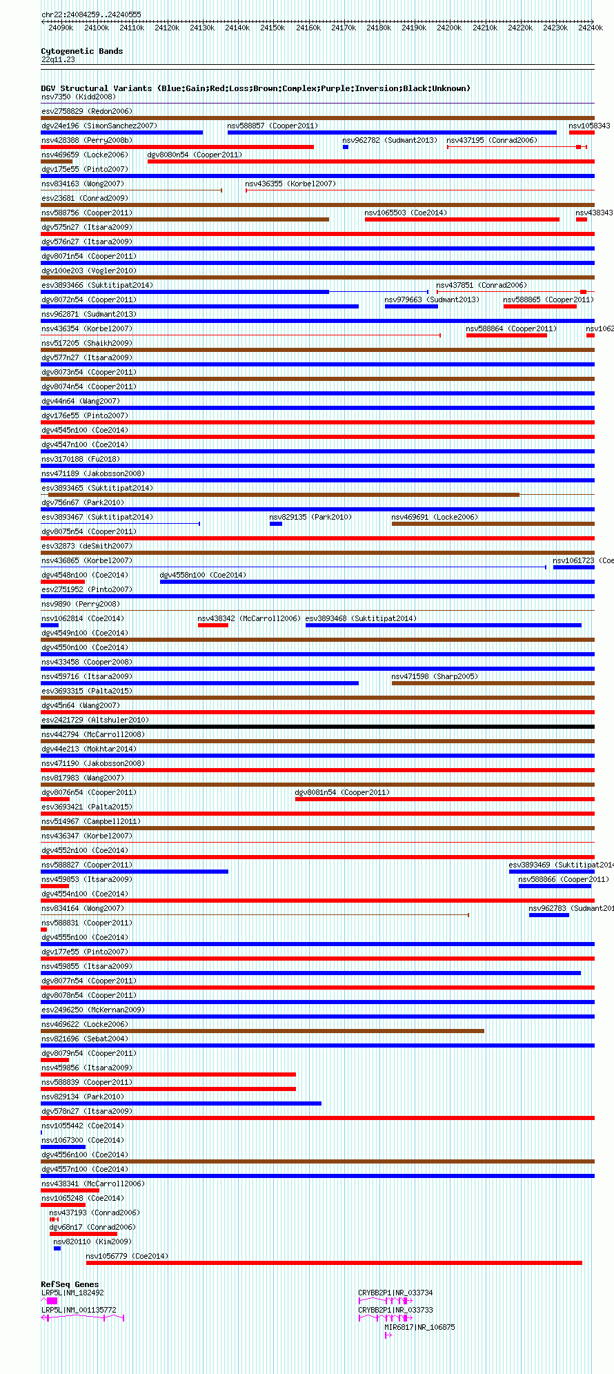 Variant DetailsVariant: nsv588846| Internal ID | 16376255 | | Landmark | | | Location Information | | | Cytoband | 22q11.23 | | Allele length | | Assembly | Allele length | | hg38 | 156297 | | hg19 | 156297 | | hg18 | 156297 |