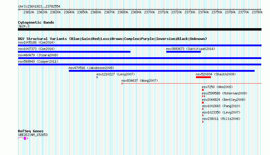 Variant DetailsVariant: nsv589949| Internal ID | 16377358 | | Landmark | | | Location Information | | | Cytoband | 3p24.3 | | Allele length | | Assembly | Allele length | | hg38 | 180632 | | hg19 | 180632 | | hg18 | 180632 |