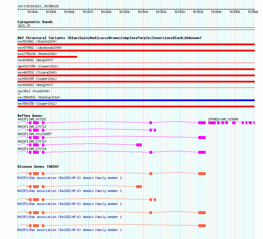 Variant DetailsVariant: nsv590258| Internal ID | 16377667 | | Landmark | | | Location Information | | | Cytoband | 3p21.31 | | Allele length | | Assembly | Allele length | | hg38 | 12864 | | hg19 | 12864 | | hg18 | 12864 |