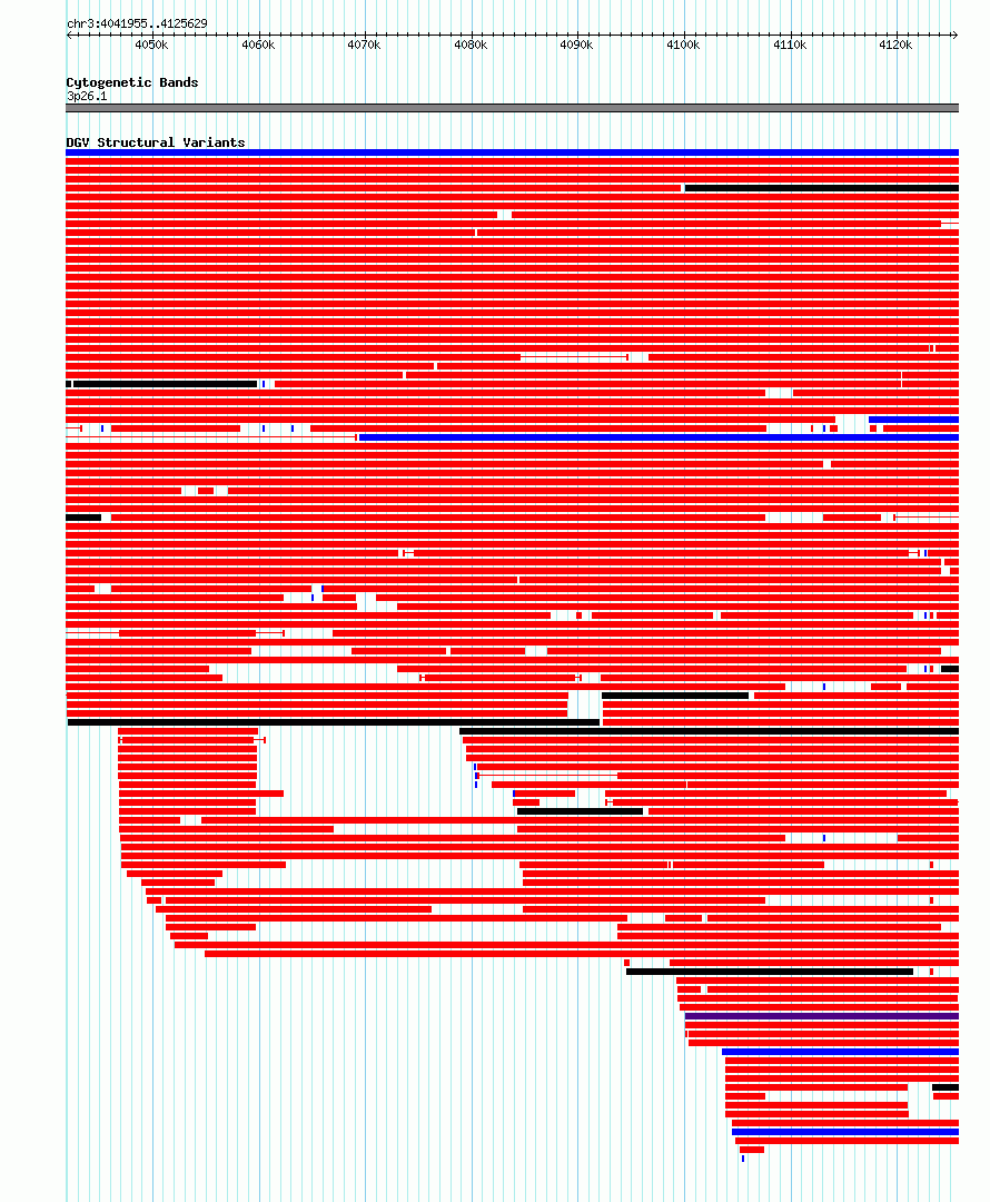 Variant DetailsVariant: nsv5902597| Internal ID | 22677757 | | Landmark | | | Location Information | | | Cytoband | 3p26.1 | | Allele length | | Assembly | Allele length | | hg38 | 83675 | | hg19 | 83675 |