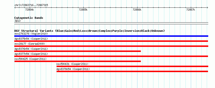 Variant DetailsVariant: nsv590627| Internal ID | 16378036 | | Landmark | | | Location Information | | | Cytoband | 3p13 | | Allele length | | Assembly | Allele length | | hg38 | 3600 | | hg19 | 3600 | | hg18 | 3600 |
