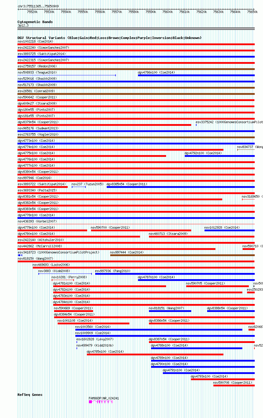 Variant DetailsVariant: nsv590659| Internal ID | 16378068 | | Landmark | | | Location Information | | | Cytoband | 3p12.3 | | Allele length | | Assembly | Allele length | | hg38 | 139545 | | hg19 | 139545 | | hg18 | 139545 |