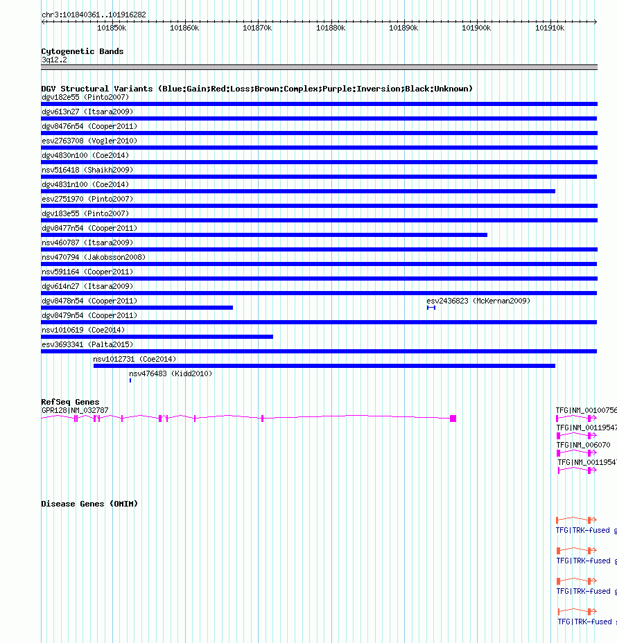 Variant DetailsVariant: nsv591169| Internal ID | 16378578 | | Landmark | | | Location Information | | | Cytoband | 3q12.2 | | Allele length | | Assembly | Allele length | | hg38 | 75922 | | hg19 | 75922 | | hg18 | 75922 |