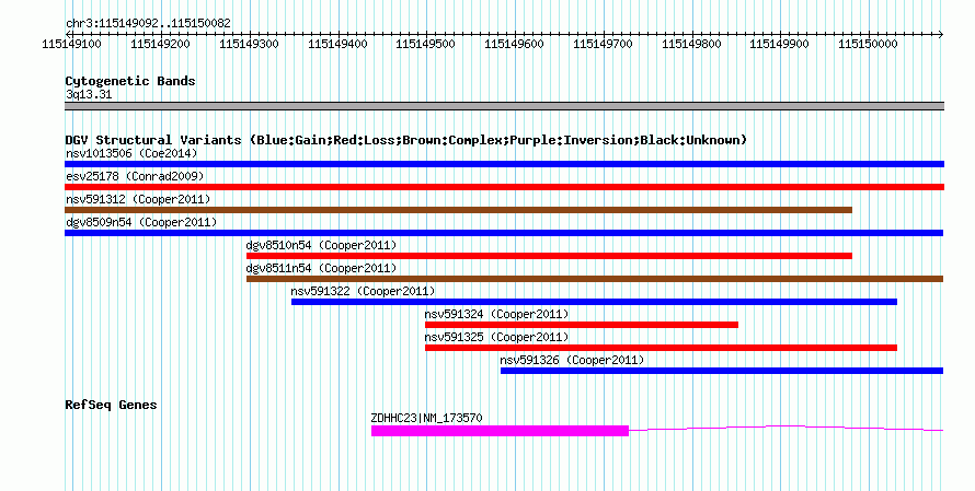 Variant DetailsVariant: nsv591317| Internal ID | 16378726 | | Landmark | | | Location Information | | | Cytoband | 3q13.31 | | Allele length | | Assembly | Allele length | | hg38 | 991 | | hg19 | 991 | | hg18 | 991 |