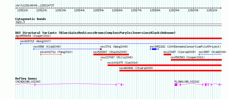 Variant DetailsVariant: nsv591560| Internal ID | 16032283 | | Landmark | | | Location Information | | | Cytoband | 3q21.3 | | Allele length | | Assembly | Allele length | | hg38 | 108732 | | hg19 | 108732 | | hg18 | 108732 |