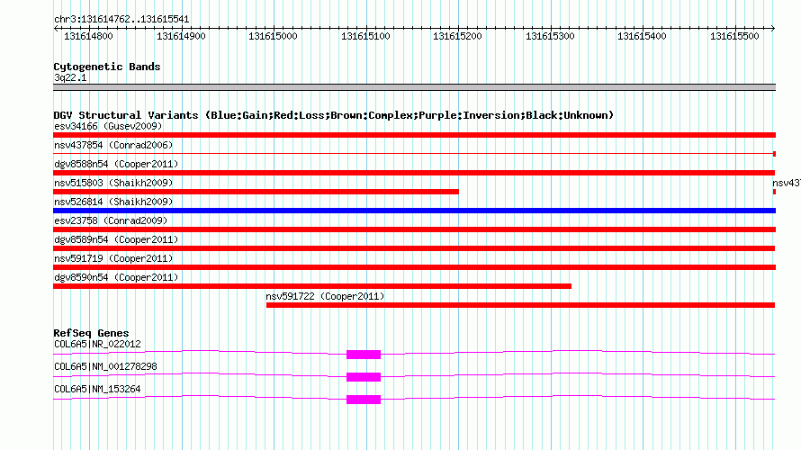 Variant DetailsVariant: nsv591721| Internal ID | 16379130 | | Landmark | | | Location Information | | | Cytoband | 3q22.1 | | Allele length | | Assembly | Allele length | | hg38 | 780 | | hg19 | 780 | | hg18 | 780 |