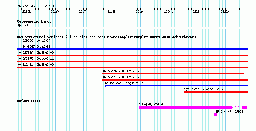 Variant DetailsVariant: nsv593375| Internal ID | 16380784 | | Landmark | | | Location Information | | | Cytoband | 4p16.3 | | Allele length | | Assembly | Allele length | | hg38 | 8116 | | hg19 | 8116 | | hg18 | 8116 |