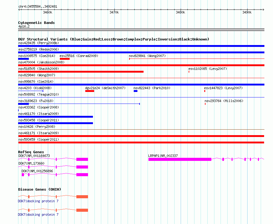 Variant DetailsVariant: nsv593459| Internal ID | 16380868 | | Landmark | | | Location Information | | | Cytoband | 4p16.2 | | Allele length | | Assembly | Allele length | | hg38 | 36898 | | hg19 | 36898 | | hg18 | 36898 |