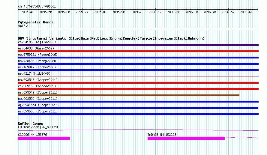 | Known Genes | CCDC96, LOC100129931, TADA2B |