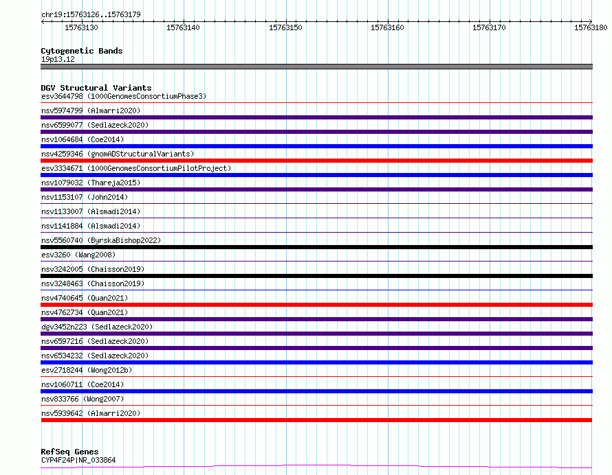 Variant DetailsVariant: nsv5939642| Internal ID | 22715038 | | Landmark | | | Location Information | | | Cytoband | 19p13.12 | | Allele length | | Assembly | Allele length | | hg38 | 54 | | hg19 | 54 |