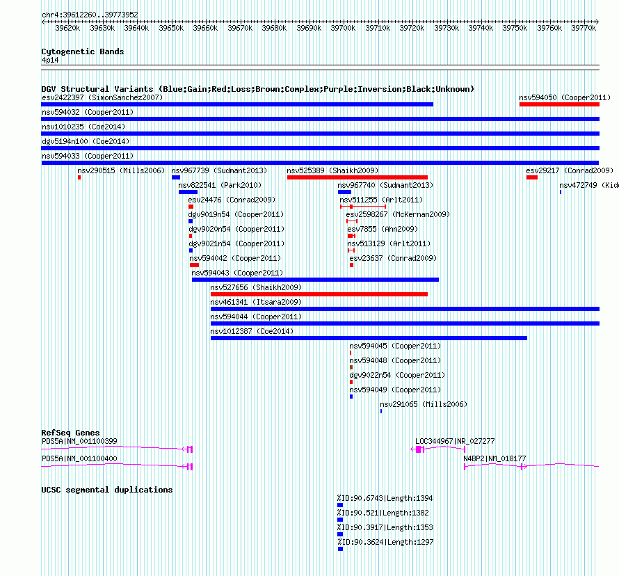 Variant DetailsVariant: nsv594033| Internal ID | 16034756 | | Landmark | | | Location Information | | | Cytoband | 4p14 | | Allele length | | Assembly | Allele length | | hg38 | 161693 | | hg19 | 161693 | | hg18 | 161693 |