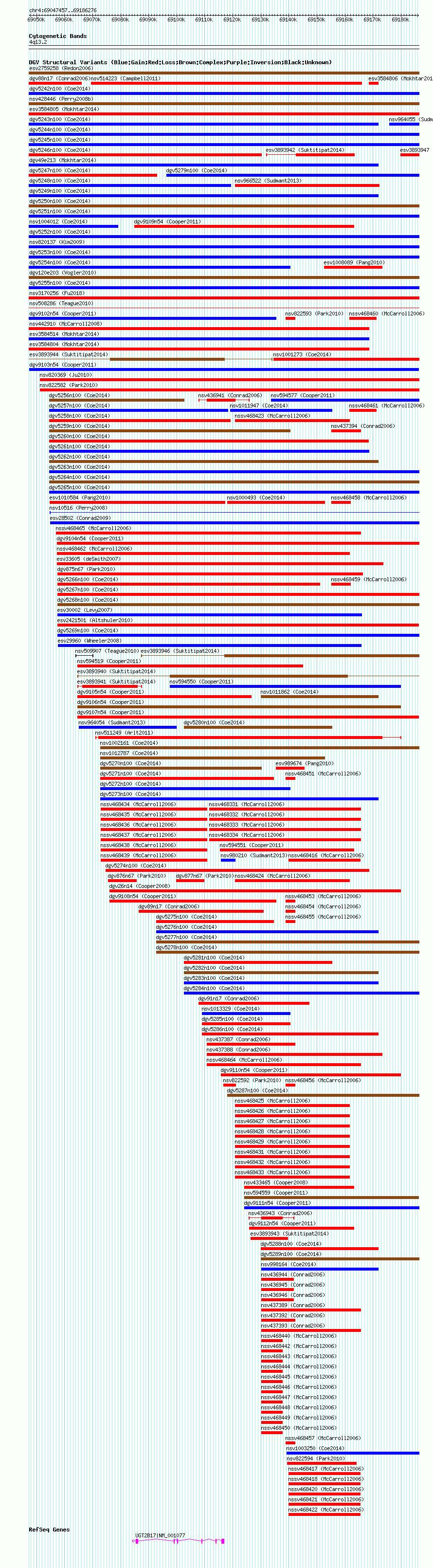 Variant DetailsVariant: nsv594509| Internal ID | 16381918 | | Landmark | | | Location Information | | | Cytoband | 4q13.2 | | Allele length | | Assembly | Allele length | | hg38 | 138820 | | hg19 | 138820 | | hg18 | 138820 |