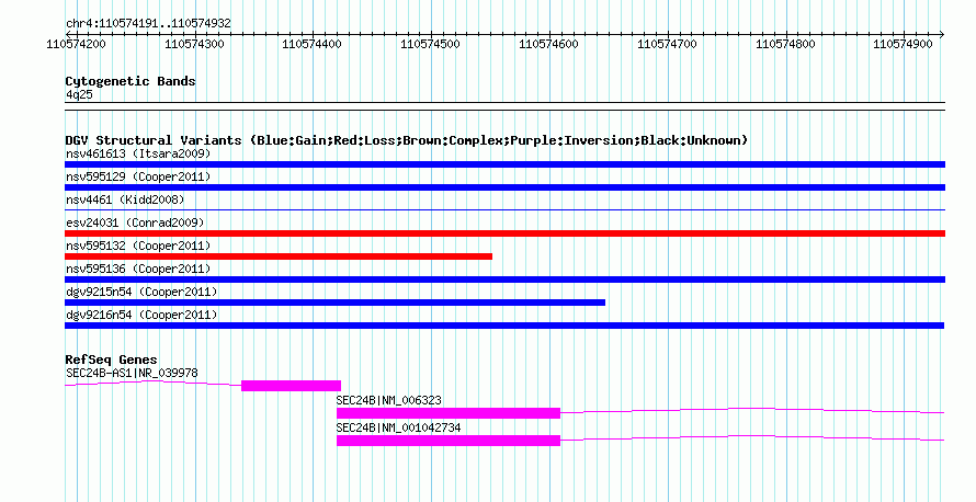 Variant DetailsVariant: nsv595141| Internal ID | 16382550 | | Landmark | | | Location Information | | | Cytoband | 4q25 | | Allele length | | Assembly | Allele length | | hg38 | 742 | | hg19 | 742 | | hg18 | 742 |