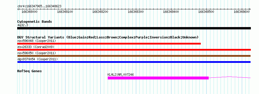 | | Variant Type | CNV gain+loss | | Copy Number | | | Allele State | | | Allele Origin | | | Probe Count | | | Validation Flag | | | Merged Status | M | | Merged Variants | | | Supporting Variants | nssv1012550, nssv1012545, nssv1012548, nssv1012549, nssv1012551, nssv1012547, nssv1012546 | | Samples | | | Known Genes | KLHL2 | | Method | SNP array | | Analysis | Illumina SNP array copy number analysis | | Platform | Not reported | | Comments | | | Reference | Cooper_et_al_2011 | | Pubmed ID | 21841781 | | Accession Number(s) | nsv596050