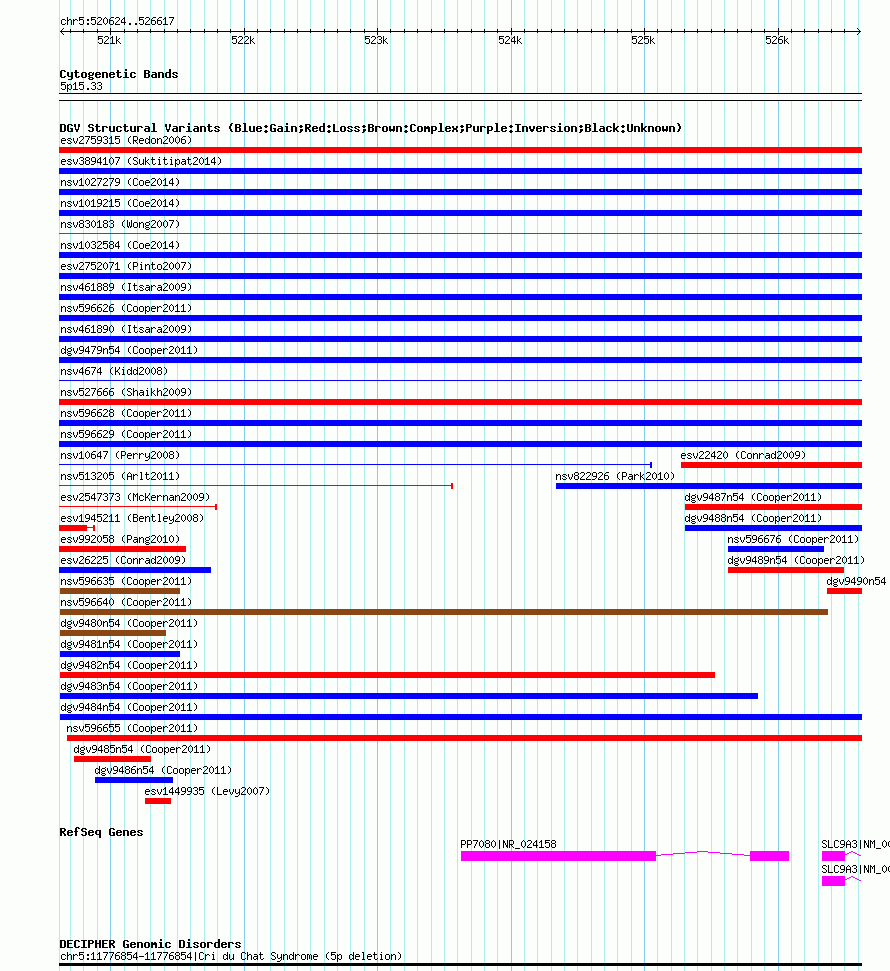 Variant DetailsVariant: nsv596642| Internal ID | 16384051 | | Landmark | | | Location Information | | | Cytoband | 5p15.33 | | Allele length | | Assembly | Allele length | | hg38 | 5994 | | hg19 | 5994 | | hg18 | 5994 |