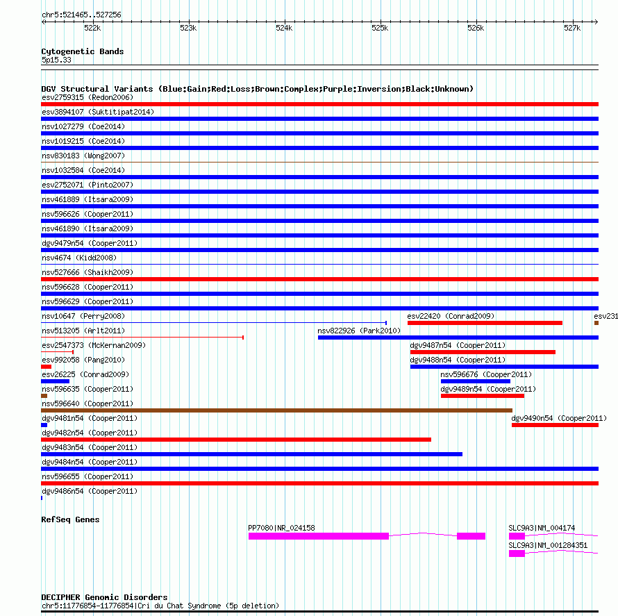 Variant DetailsVariant: nsv596673| Internal ID | 16384082 | | Landmark | | | Location Information | | | Cytoband | 5p15.33 | | Allele length | | Assembly | Allele length | | hg38 | 5792 | | hg19 | 5792 | | hg18 | 5792 |
