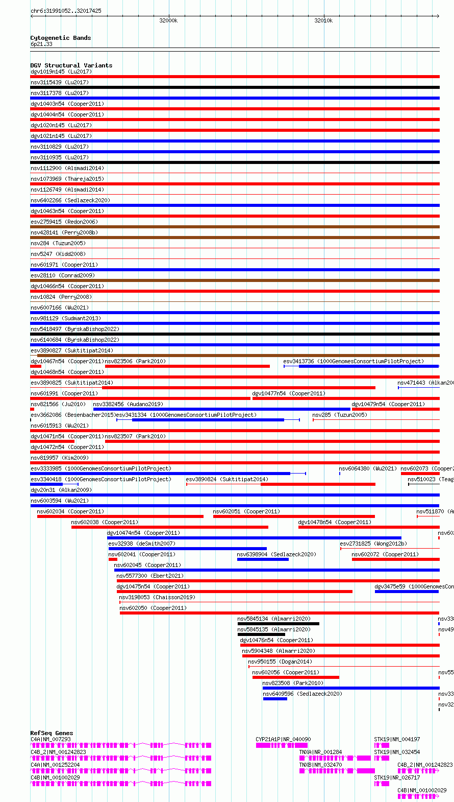 Variant DetailsVariant: nsv6003594| Internal ID | 21912937 | | Landmark | | | Location Information | | | Cytoband | 6p21.33 | | Allele length | | Assembly | Allele length | | hg38 | 26374 | | hg19 | 26374 |