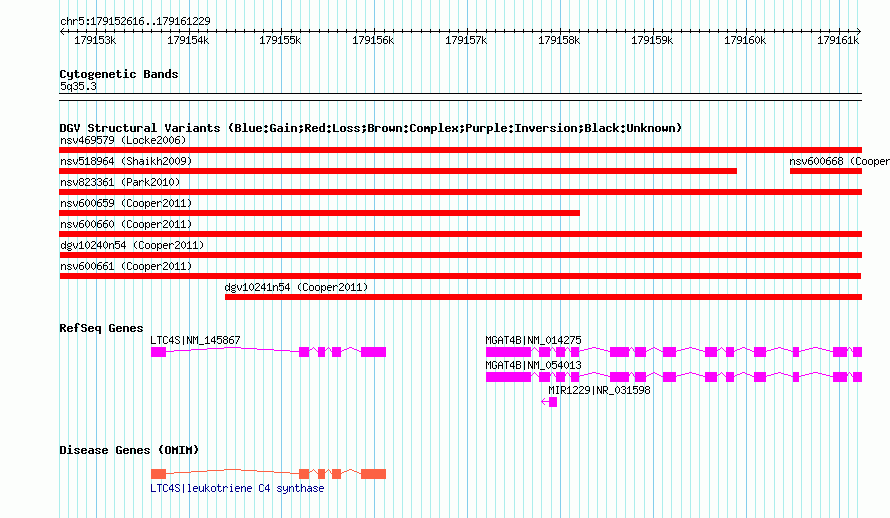 Variant DetailsVariant: nsv600661| Internal ID | 16388070 | | Landmark | | | Location Information | | | Cytoband | 5q35.3 | | Allele length | | Assembly | Allele length | | hg38 | 8615 | | hg19 | 8614 | | hg18 | 8614 |