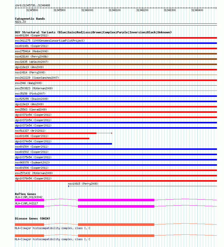 Variant DetailsVariant: nsv601508| Internal ID | 16388917 | | Landmark | | | Location Information | | | Cytoband | 6p21.33 | | Allele length | | Assembly | Allele length | | hg38 | 731 | | hg19 | 731 | | hg18 | 731 |