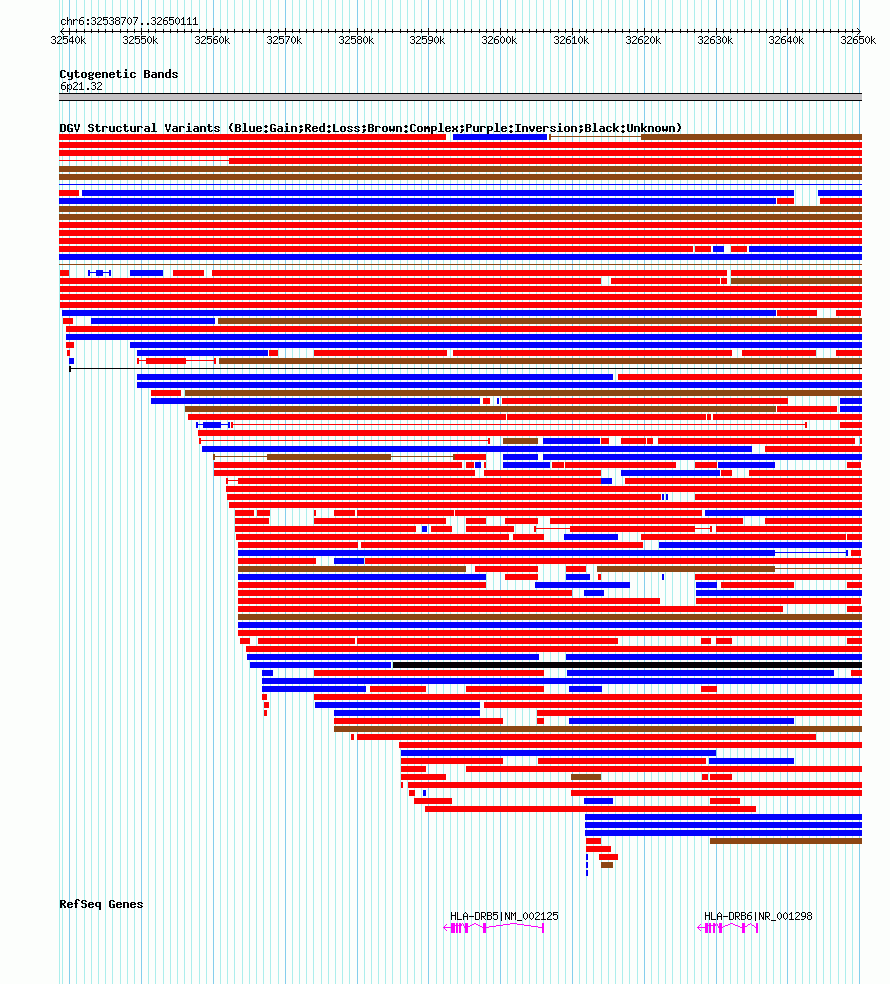 Variant DetailsVariant: nsv602114| Internal ID | 16389523 | | Landmark | | | Location Information | | | Cytoband | 6p21.32 | | Allele length | | Assembly | Allele length | | hg38 | 111405 | | hg19 | 111405 | | hg18 | 111405 |