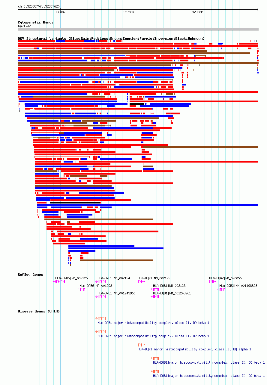 Variant DetailsVariant: nsv602118| Internal ID | 16389527 | | Landmark | | | Location Information | | | Cytoband | 6p21.32 | | Allele length | | Assembly | Allele length | | hg38 | 348914 | | hg19 | 348914 | | hg18 | 348914 |