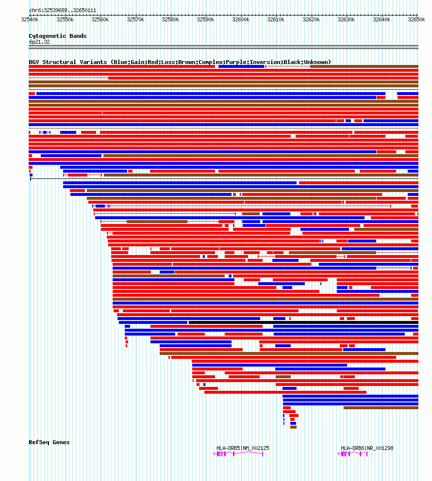 Variant DetailsVariant: nsv602124| Internal ID | 16389533 | | Landmark | | | Location Information | | | Cytoband | 6p21.32 | | Allele length | | Assembly | Allele length | | hg38 | 110423 | | hg19 | 110423 | | hg18 | 110423 |