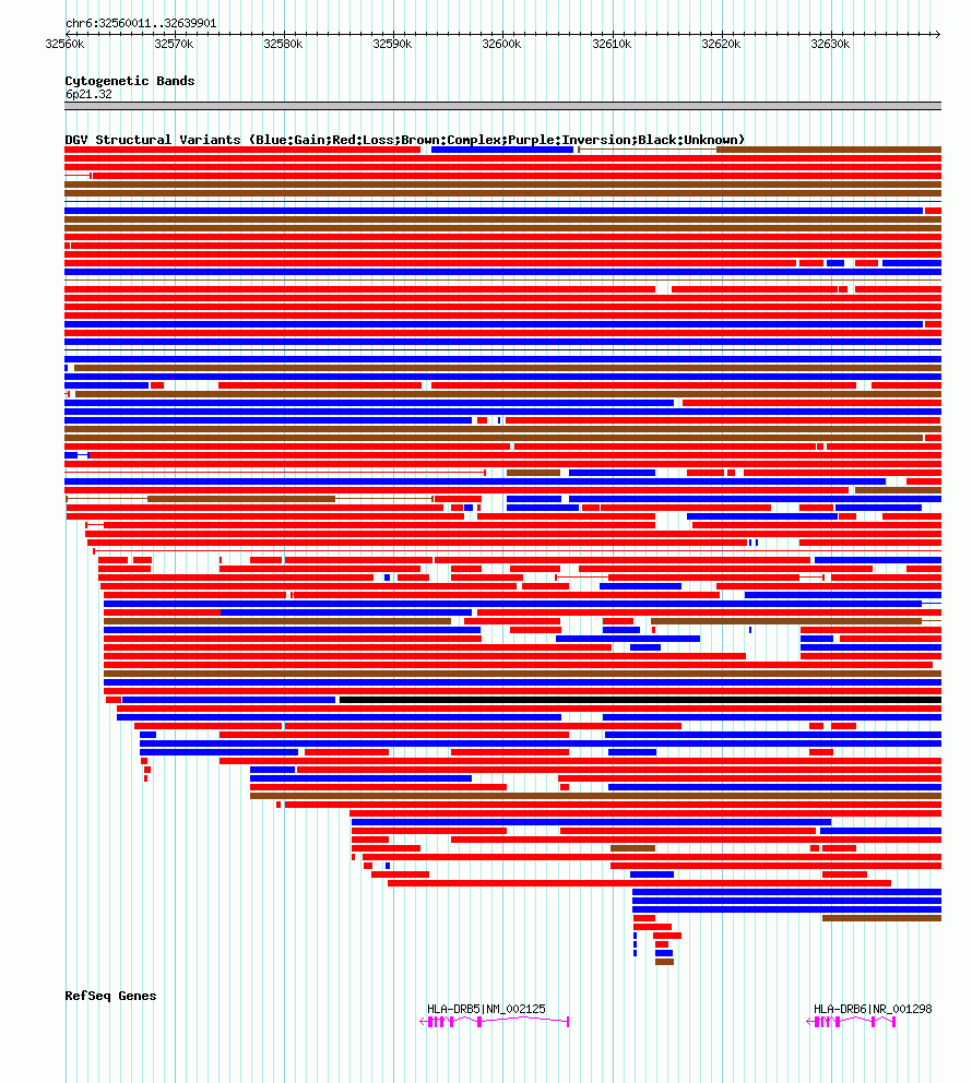 Variant DetailsVariant: nsv602152| Internal ID | 16389561 | | Landmark | | | Location Information | | | Cytoband | 6p21.32 | | Allele length | | Assembly | Allele length | | hg38 | 79891 | | hg19 | 79891 | | hg18 | 79891 |
