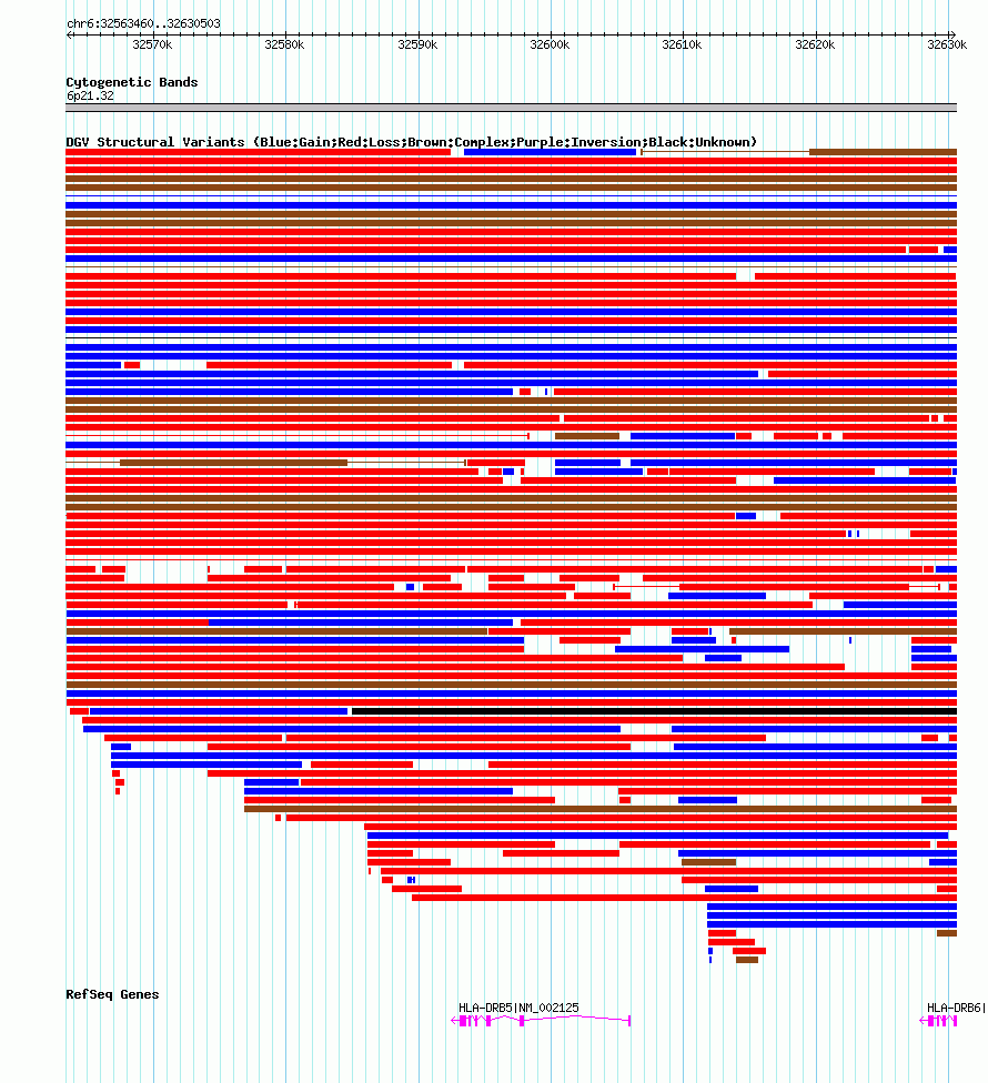 Variant DetailsVariant: nsv602171| Internal ID | 16389580 | | Landmark | | | Location Information | | | Cytoband | 6p21.32 | | Allele length | | Assembly | Allele length | | hg38 | 67044 | | hg19 | 67044 | | hg18 | 67044 |