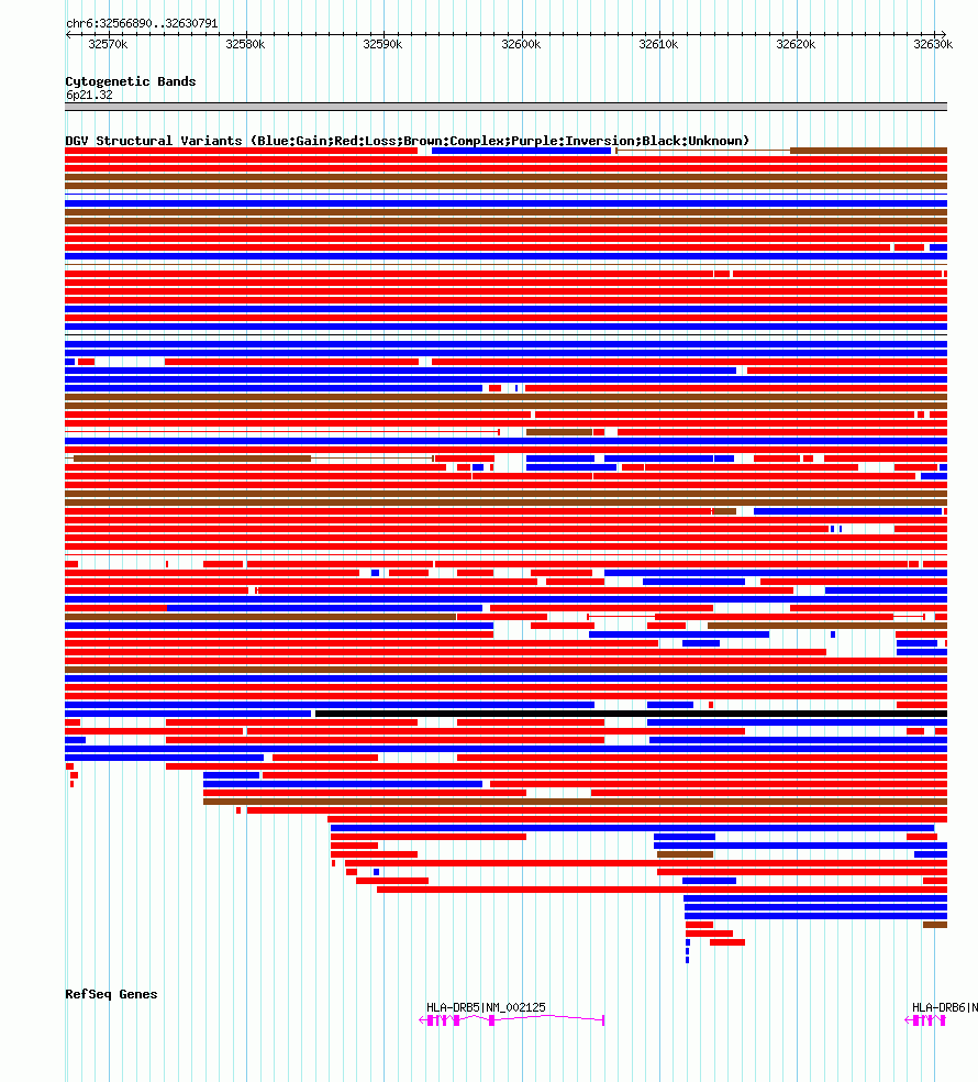 Variant DetailsVariant: nsv602257| Internal ID | 16389666 | | Landmark | | | Location Information | | | Cytoband | 6p21.32 | | Allele length | | Assembly | Allele length | | hg38 | 63902 | | hg19 | 63902 | | hg18 | 63902 |