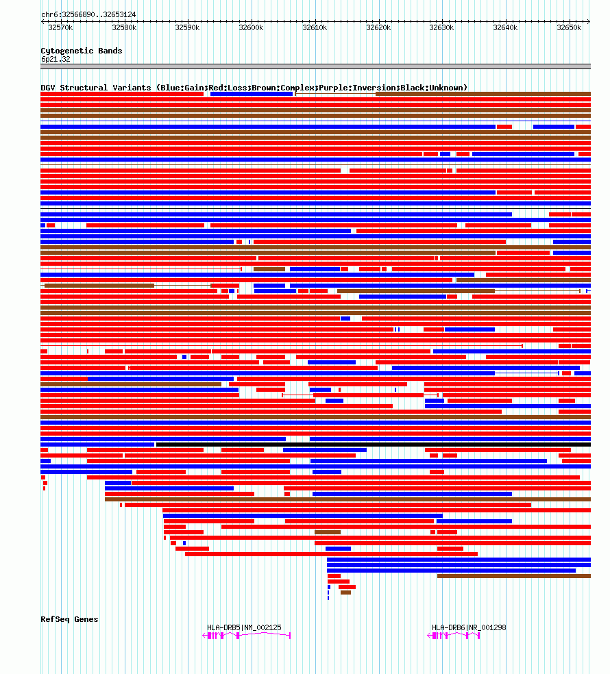 Variant DetailsVariant: nsv602260| Internal ID | 16389669 | | Landmark | | | Location Information | | | Cytoband | 6p21.32 | | Allele length | | Assembly | Allele length | | hg38 | 86235 | | hg19 | 86235 | | hg18 | 86235 |