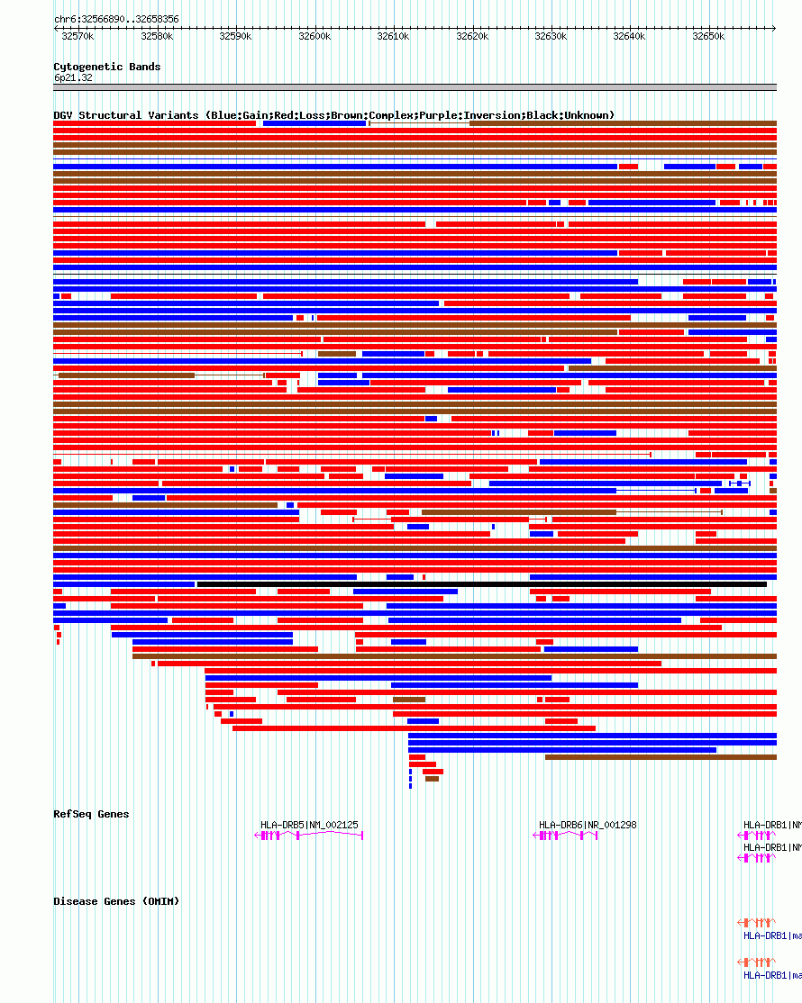 Variant DetailsVariant: nsv602265| Internal ID | 16389674 | | Landmark | | | Location Information | | | Cytoband | 6p21.32 | | Allele length | | Assembly | Allele length | | hg38 | 91467 | | hg19 | 91467 | | hg18 | 91467 |
