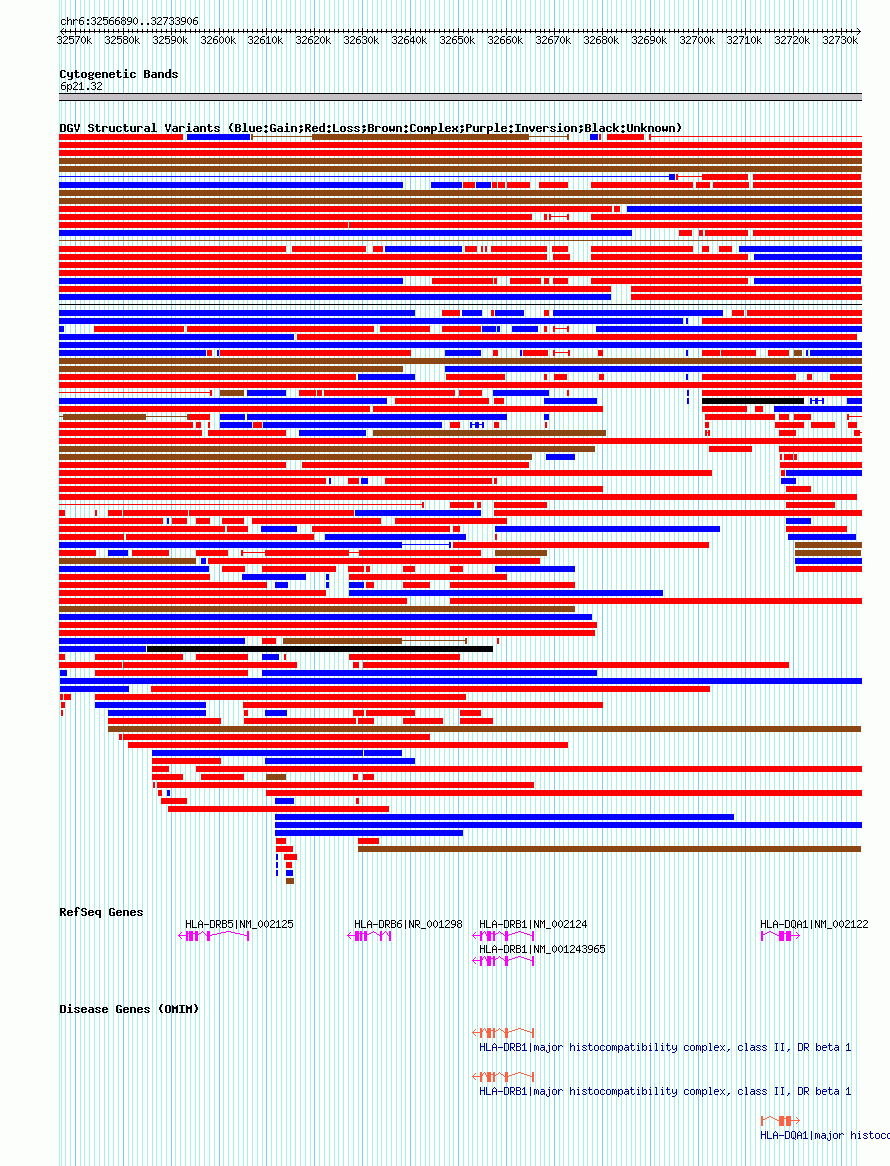 Variant DetailsVariant: nsv602278| Internal ID | 16389687 | | Landmark | | | Location Information | | | Cytoband | 6p21.32 | | Allele length | | Assembly | Allele length | | hg38 | 167017 | | hg19 | 167017 | | hg18 | 167017 |