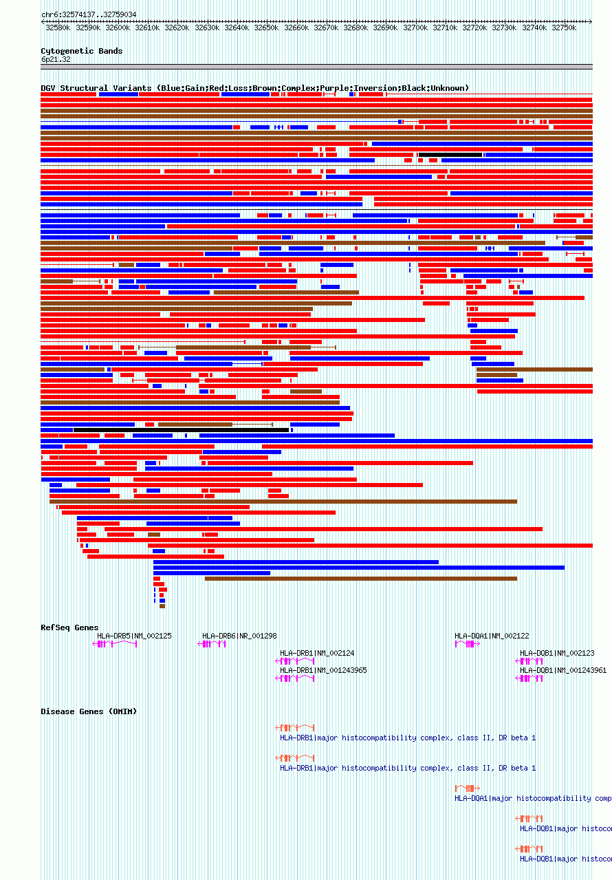 Variant DetailsVariant: nsv602327| Internal ID | 16389736 | | Landmark | | | Location Information | | | Cytoband | 6p21.32 | | Allele length | | Assembly | Allele length | | hg38 | 184898 | | hg19 | 184898 | | hg18 | 184898 |