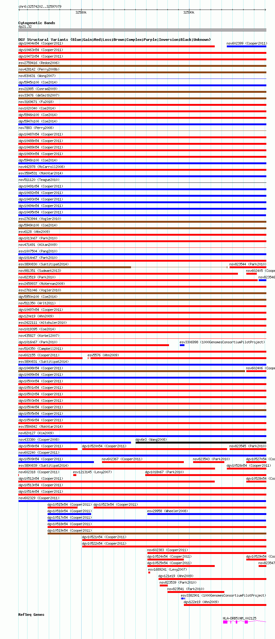 Variant DetailsVariant: nsv602329| Internal ID | 16389738 | | Landmark | | | Location Information | | | Cytoband | 6p21.32 | | Allele length | | Assembly | Allele length | | hg38 | 22878 | | hg19 | 22878 | | hg18 | 22878 |