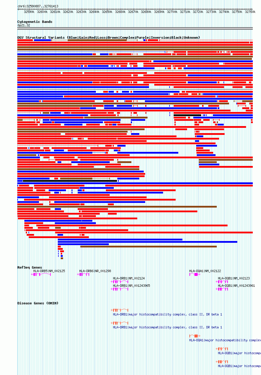 Variant DetailsVariant: nsv602358| Internal ID | 16389767 | | Landmark | | | Location Information | | | Cytoband | 6p21.32 | | Allele length | | Assembly | Allele length | | hg38 | 180527 | | hg19 | 180527 | | hg18 | 180527 |