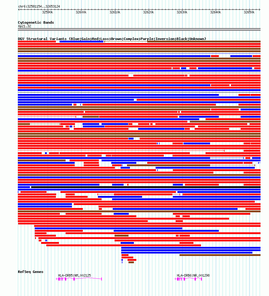 Variant DetailsVariant: nsv602363| Internal ID | 16389772 | | Landmark | | | Location Information | | | Cytoband | 6p21.32 | | Allele length | | Assembly | Allele length | | hg38 | 71971 | | hg19 | 71971 | | hg18 | 71971 |