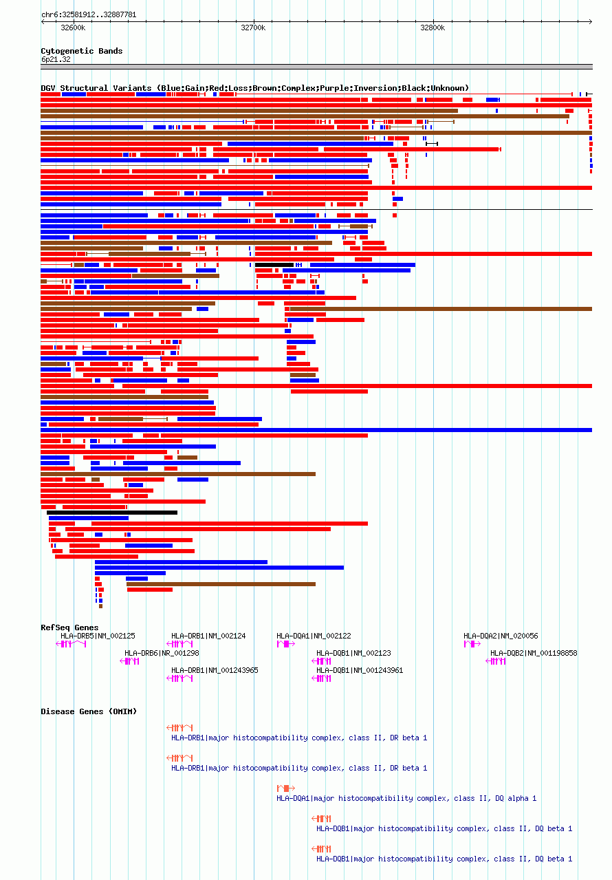Variant DetailsVariant: nsv602380| Internal ID | 16389789 | | Landmark | | | Location Information | | | Cytoband | 6p21.32 | | Allele length | | Assembly | Allele length | | hg38 | 305870 | | hg19 | 305870 | | hg18 | 305870 |