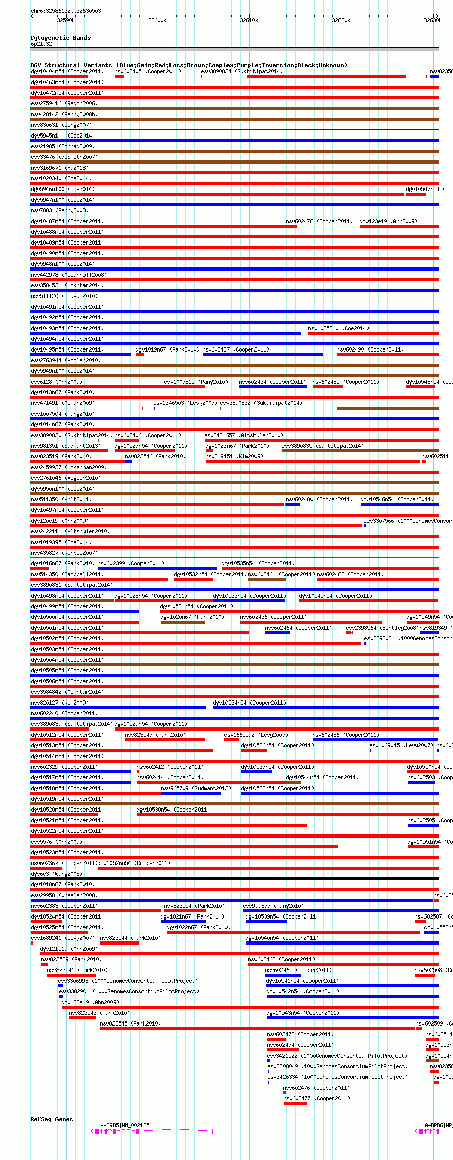 Variant DetailsVariant: nsv602385| Internal ID | 16389794 | | Landmark | | | Location Information | | | Cytoband | 6p21.32 | | Allele length | | Assembly | Allele length | | hg38 | 44372 | | hg19 | 44372 | | hg18 | 44372 |