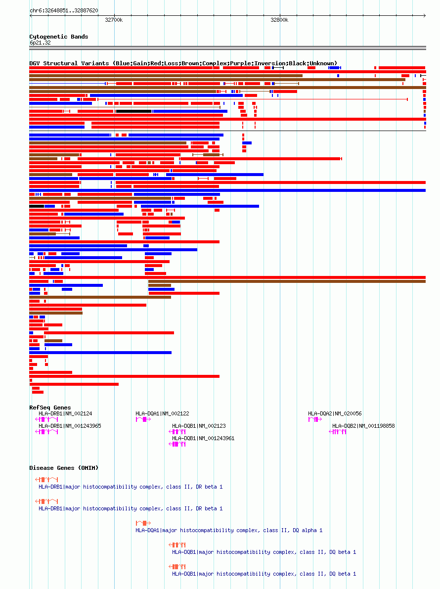 Variant DetailsVariant: nsv602611| Internal ID | 16390020 | | Landmark | | | Location Information | | | Cytoband | 6p21.32 | | Allele length | | Assembly | Allele length | | hg38 | 238770 | | hg19 | 238770 | | hg18 | 238770 |