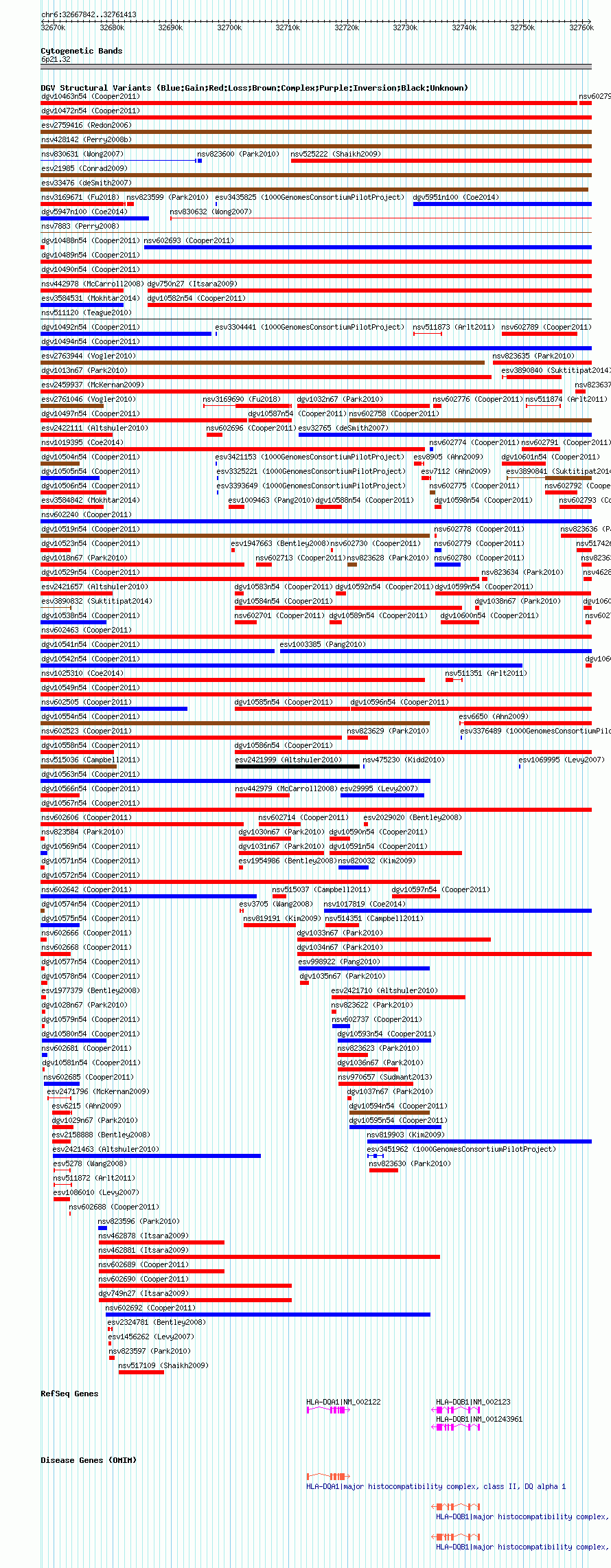 Variant DetailsVariant: nsv602673| Internal ID | 16390082 | | Landmark | | | Location Information | | | Cytoband | 6p21.32 | | Allele length | | Assembly | Allele length | | hg38 | 93572 | | hg19 | 93572 | | hg18 | 93572 |