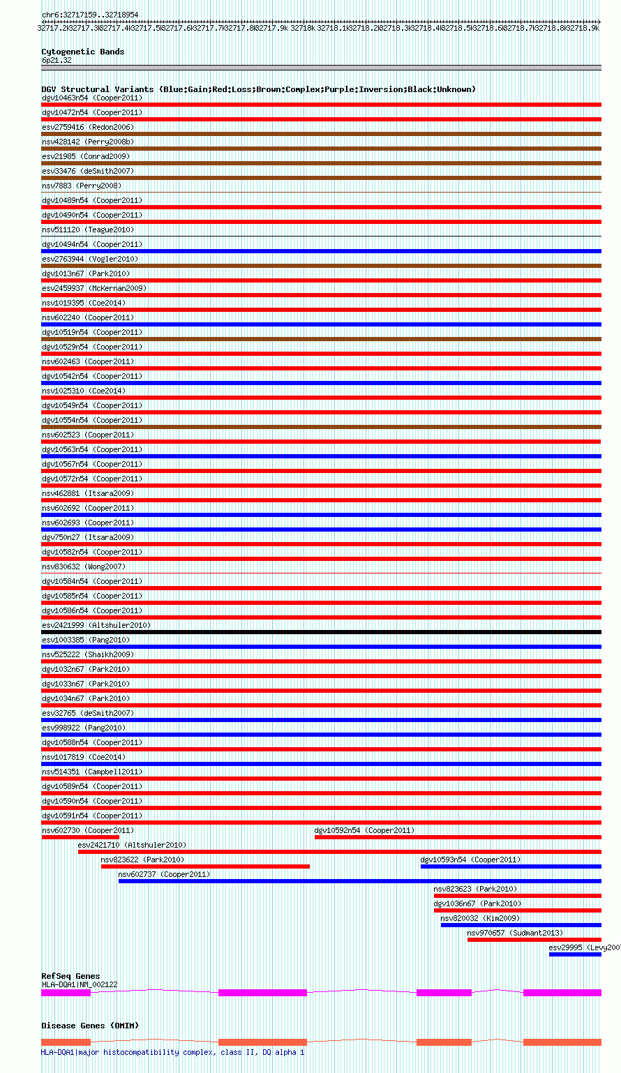 Variant DetailsVariant: nsv602731| Internal ID | 16390140 | | Landmark | | | Location Information | | | Cytoband | 6p21.32 | | Allele length | | Assembly | Allele length | | hg38 | 1796 | | hg19 | 1796 | | hg18 | 1796 |
