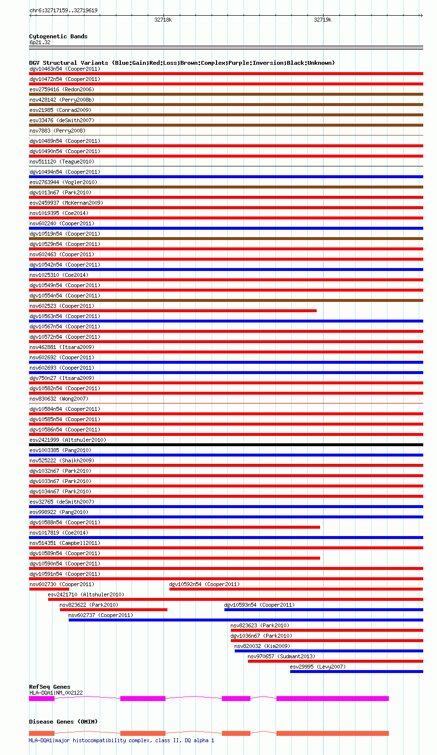 Variant DetailsVariant: nsv602732| Internal ID | 16390141 | | Landmark | | | Location Information | | | Cytoband | 6p21.32 | | Allele length | | Assembly | Allele length | | hg38 | 2461 | | hg19 | 2461 | | hg18 | 2461 |
