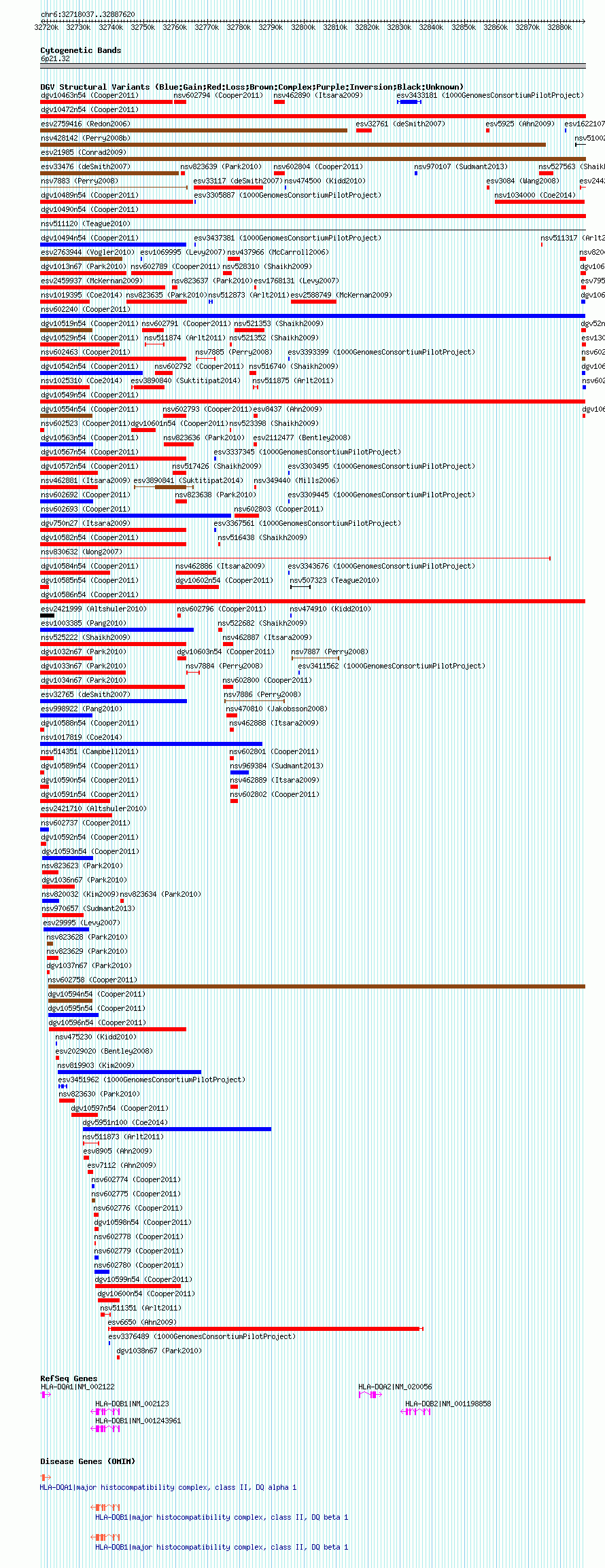 Variant DetailsVariant: nsv602740| Internal ID | 16390149 | | Landmark | | | Location Information | | | Cytoband | 6p21.32 | | Allele length | | Assembly | Allele length | | hg38 | 169584 | | hg19 | 169584 | | hg18 | 169584 |