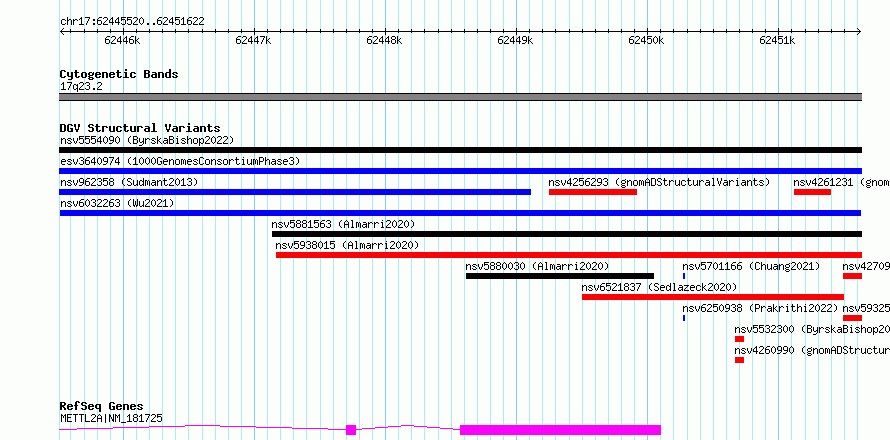 Variant DetailsVariant: nsv6032263| Internal ID | 21941606 | | Landmark | | | Location Information | | | Cytoband | 17q23.2 | | Allele length | | Assembly | Allele length | | hg38 | 6103 | | hg19 | 6103 |