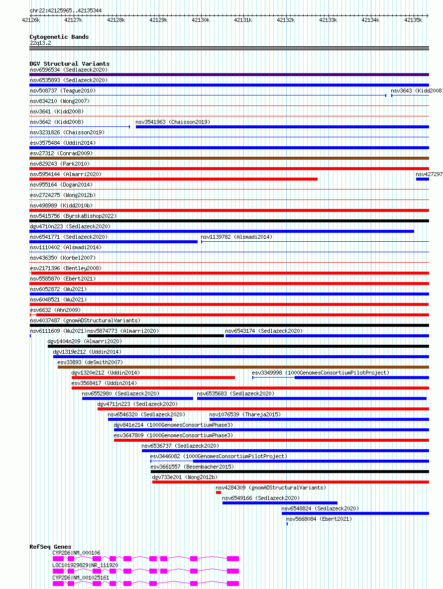 Variant DetailsVariant: nsv6048521| Internal ID | 21957754 | | Landmark | | | Location Information | | | Cytoband | 22q13.2 | | Allele length | | Assembly | Allele length | | hg38 | 9380 | | hg19 | 9384 |